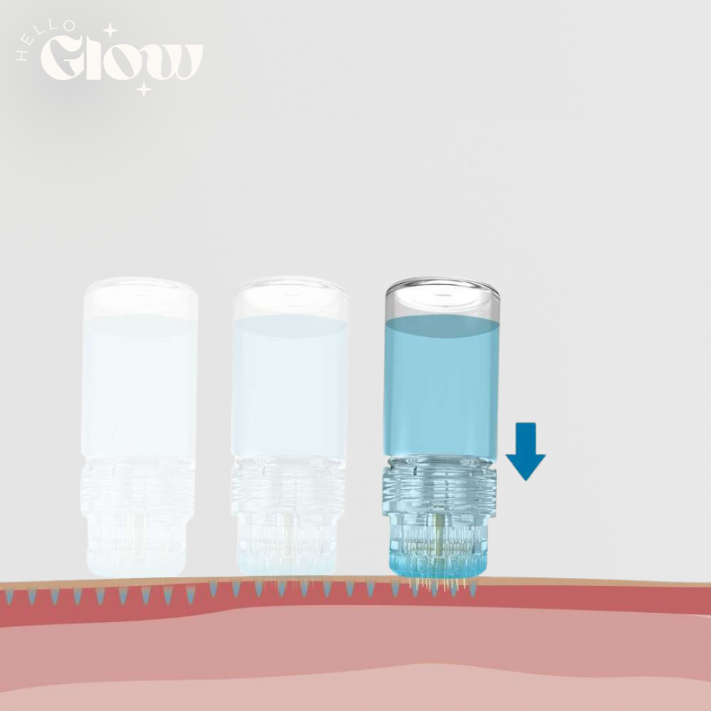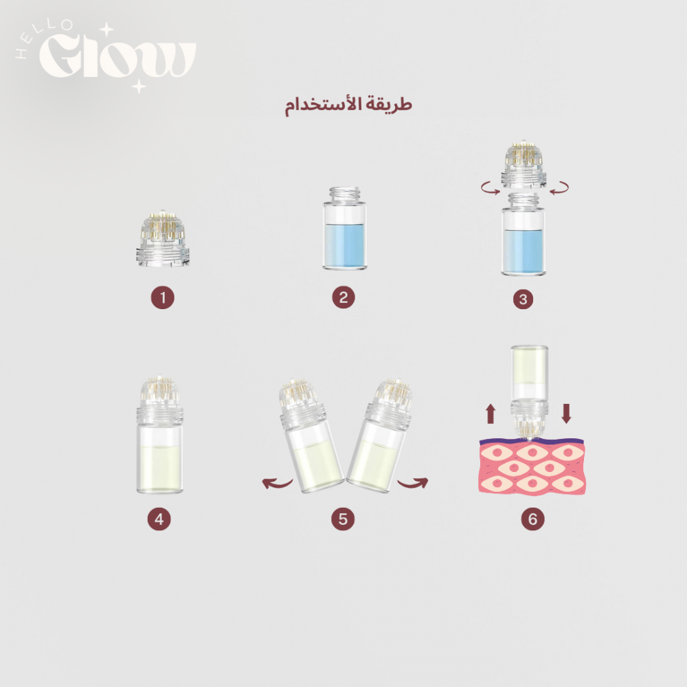 عبوه قابلة لإعادة الاستخدام تعمل على نظام Spiral Groove للإبرة هو توصيل مصل موضعي( سيروم) إلى طبقة الأدمة في البشره مباشرة.